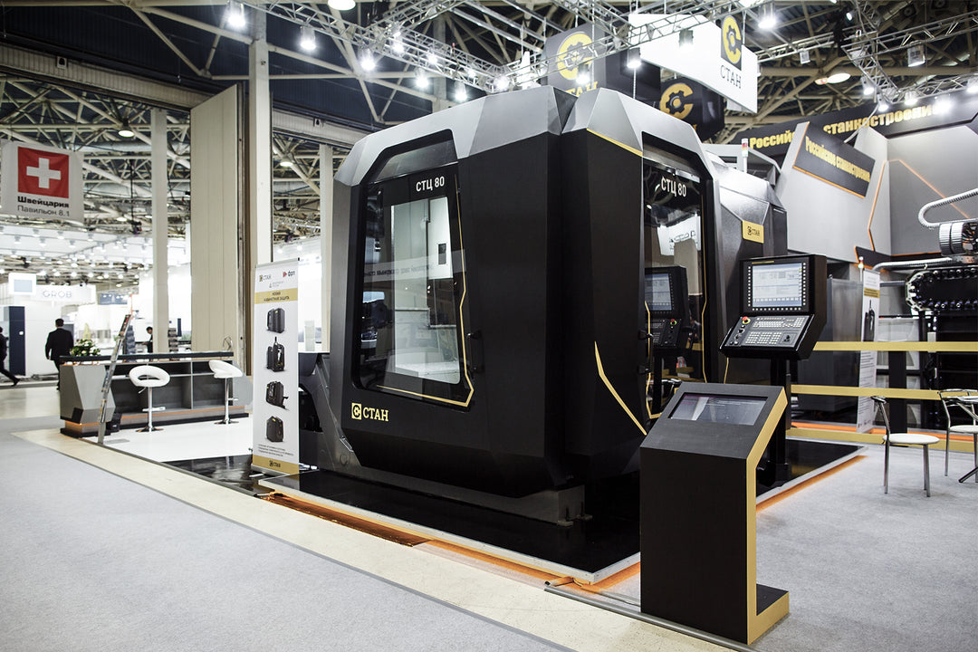 When it was time to unveil the new design at Russia’s biggest machine tool fair, we didn’t just have a complete line-up of stealthy-looking machines - we had a booth that matched the whole vibe, staff in custom outfits, and one special thing...